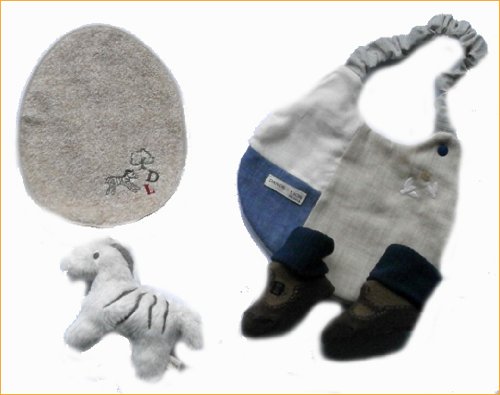 - スタイと授乳タオルとブーツ型靴下とマスコットの4点セットです。