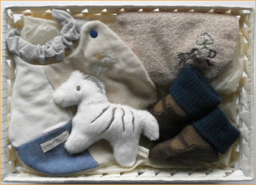 人気のオーガニックコットンの新作カゴ入りギフトが出来ました。 オーガニックコットンを使用したスタイや授乳タオルを組み合わせた高級ベビーギフトです。めちゃめちゃ柔らかですよ アイテムもスタイ 靴下 授乳タオル マスコットの4点セットでどれも重宝で必要なものばかりです。 4点も入って、しかもオーガニックコットンの日本製でこのお値段はとってもお値打ちで嬉しい。 スタイはゴム式ですので脱着は簡単。表面は綿地裏面はタオル製の張り合わせ生地です。両面ともオーがニックコットン 授乳タオルは1枚あるととっても便利。おっぱいやミルクの時赤ちゃんのお顔の下に敷いてあげれば、とっても快適 ママのお洋服がゴワゴワしていても平気ですね。また飲みこぼしも吸湿できる便利商品です。。 靴下は折り返しがあるのでしっかりと履けるブーツタイプです。 マスコットはコロコロと音がします。何といっても素材が柔らかなので手触りは抜群です。 またカゴ入りですので容器のカゴは後から色んなことに使えてとっても便利でおやれなギフトですね サイズ=新生児から。日本製が嬉しいベビー用品です。