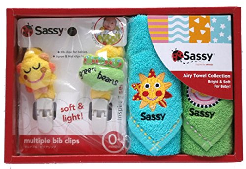 サッシーギフトセット SASSY タオルセット スタイホルダー 出産祝い スタイクリップ ウオッシュタオル ギフト 贈り物 (グリーン系男の子)
