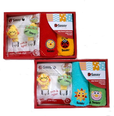 あのサッシーがちょっとしたギフトにぴったりのお手ごろギフトを作ってくれました。 何枚あっても重宝するウオッシュタオル2枚とパチンと挟めばなんでもスタイに変身させちゃう便利なスタイクリップのセットです。 ウオッシュタオルはお口を拭いたり、頭の汗を拭ったり、また濡れタオルとして持ち歩いたり本当に色んな場面で活躍する便利な商品です さすがサッシーだけあって色も鮮やかで綺麗で柔らかくて大満足です。 スタイクリップはママのハンケチやウオッシュタオルなどをパチンと挟めばすぐにスタイに変身させちちゃう優れものです。 お出かけのときママノバッグに入れておけば急なときにも大助かりですね。 ちょっとしたギフトや出産お祝いでお悩みのお客様は、これで決まりです。贈って喜ばれること間違いなしです どのママも欲しかったブランドですよ。贈るかたのセンスがしのばれるギフトです。 2000円というお手ごろなお値段が好評です。贈って安心、もらって嬉しい失敗のないギフトです サイズ 新生児より