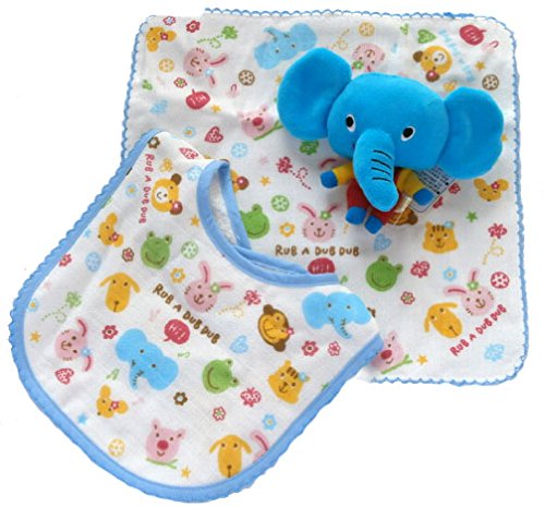 かわいいタオル製ベビー服のギフトセットです。 昨年発売し、出し好評のギフトセットが新柄にて再登場です。 色がとっても綺麗ですし、淡い色が多いいベビー服の中でこんなに綺麗な色だしは、とっても新鮮です。 内容も、何枚あっても重宝するスタイとガーゼハンカチと赤ちゃんが喜ぶガラガラの3点セットです スタイ=表ガーゼ製裏タオル素材貼り合わせ、マジックテープでとめるだけでいいので、使いやすいです。 裏のタオルでしみ込んだ涎もしっかり吸湿していきます。 ガラガラ=振ると音が出て赤ちゃんは興味深々、柔らかくて安心です。 ガーゼハンカチ=何枚あっても重宝するガーゼハンカチです。裏にタオル素材を貼り合わせていますので 吸湿性も強さもある優れものです 以上3点のセットです。 どの商品も重宝で便利なので出産祝いやギフトには、最適です。 もらって嬉しい心のこもったギフトです スタイとガーゼハンケチは日本製です。 3ヶ月くらいよりご利用になれます