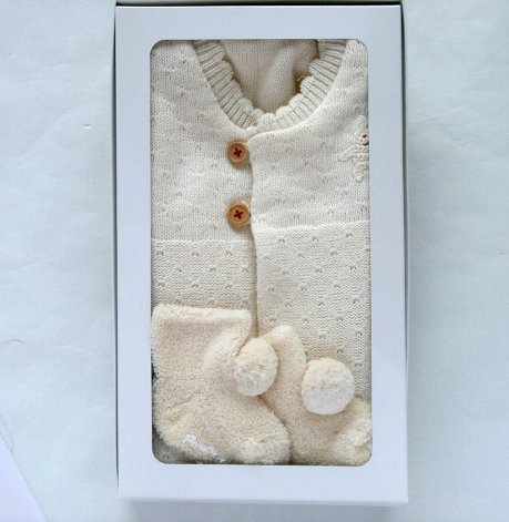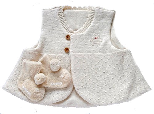 - 日本製で縫製もしっかりと仕上げた逸品です サイズ=ベスト 身ごろ 34cm 着丈 29cm 靴下 9cm-11cm
