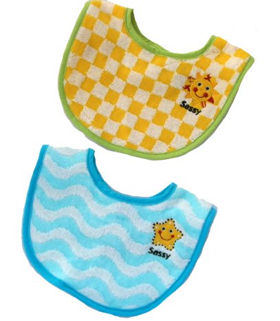 ギフトや出産お祝いでお悩みのお客様は、これで決まりです。贈って喜ばれること間違いなしです どのママも欲しかったブランドですよ。贈るかたのセンスがしのばれるギフトです。 タオルは使い勝手のいいハンドタオルの大きさです。 滑らか仕上げをしていますので肌触りはメチャメチャいいですよ。柄も1番人気のおさるさん柄です。 大胆で濃い色つけのタオルは製法がむつかしいし、市場にもあまりありません。 はっきりした色合いが赤ちゃんに映えることうけあいです。 スタイ 2枚入っています スタイは何枚あっても重宝するものです。サッシーは滑らか仕上げをした優しいタオルで作りました お口に優しく吸湿性にも優れ、お洗濯にも強いすぐれ物です。 スナップでとめるワンタッチ式なので簡単に脱着できます バンブルバイツとリストラル さあー、あのベストセラーバンブルバイツが はいっていますよ。 これは赤ちゃんの歯固めで、赤ちゃんは丁度歯が生え出すころにお口がむずむずするのです。 だから、色んなものをお口にいれてしまいます。 そんな時にこの可愛い歯固めをあたえてあげれば 喜んで口にいれます おまけに、冷蔵庫で冷やすと青い色の部分が冷たくなりますので、歯が生える時の熱を下げられ、ますます赤ちゃんは大喜び。 サッシーの超ベストセラーで、1つはどうしてもほしいですね リストラルは手首や足首に巻いてあげて、赤ちゃんが動かすと音が出るので興味深々で遊びます。 また、お昼寝から起きた時などもすぐわかるので便利です。 以上5点が入った自信を持ってお勧めするギフトです
