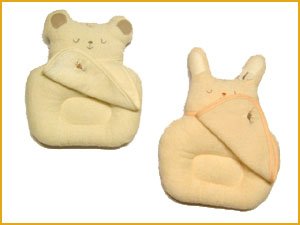 柔らかタオル製ベビー服ハニーシリーズのドーナツ枕です。柔らかなタオル製ですので、肌触りと吸湿性は抜群です。ウサギさんとクマさんのエプロンの部分はガーゼで出来ていますので、さらに柔らかで吸湿性に富みますさらに、エプロンは取り外しができますので、お洗濯も簡単です。