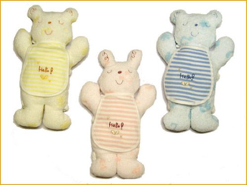 赤ちゃんは頭には沢山の汗をかきます。抱っこされておっぱいを飲む時、またお出かけの時など赤ちゃんの頭もママの腕も汗だくですねそんな時便利なのがタオル製の抱っこ枕です。枕の後ろについているループに腕を通してママの腕に取り付けて抱っこしてあげると、動物さんが丁度いい枕になります
