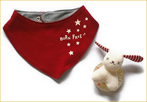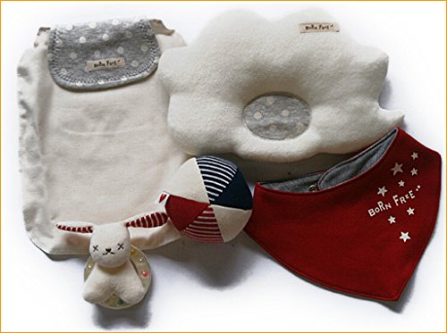 ベビーギフトセット 通販 贈り物 ベビー枕 スタイ ガラガラ ベビー服 汗取りタオル ドーナツ枕=日本製のビセラの詰め合わせ=出産祝いやギフトにもどうぞ (赤)