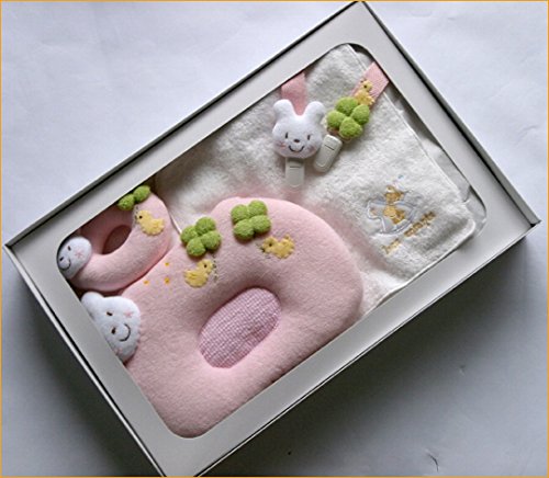 授乳枕 ドーナツ枕で抱っこ枕にもなるベビー枕のギフトセット 日本製 授乳枕=出産祝いやギフトにも人気のベビー用品スタイ ガラガラ スタイクリップ ミニタオル (ピンク)