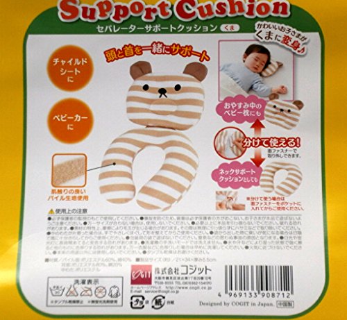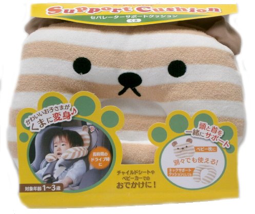 ドライブやお出かけの時、赤ちゃんはすぐ寝ちゃいます。車の揺れやバギーのガタガタで首が不安定な状態になってしまいます。 そんな時の強い味方が、ネコさんのサポート枕です 輪の部分を首に巻いてあげて、ネコさんの顔の部分を後頭部に当ててあげれば、首と頭がしっかりとホールドされます もう車が揺れても赤ちゃんの首は安全 安心 快適です。 輪の部分とネコさんの顔の部分はマジックテ^プで切り離されますので、別々に使う事も出来ます。 ネコさんの顔はドーナツ枕状になっておりますので お昼寝の時は、ネコさんの顔の部分だけ使ってドーナツ枕としてご利用ください。 ひとつあるととっても便利な枕です。車の中に置いておいてもいいですね。 素材は表地パイル、中綿はポリエステルとなっております。肌触りが良くて吸湿性も有る逸品です 出産祝いやギフトにもどうぞ。 サイズ 21cmX36cmX5.5cm