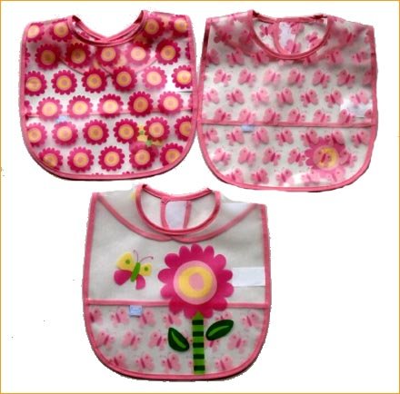 【3枚セットでこのお値段】アメリカ生まれのお食事スタイ 。EVA樹脂製、お食事エプロン ベビー服、ベビー用品。 (お花柄)