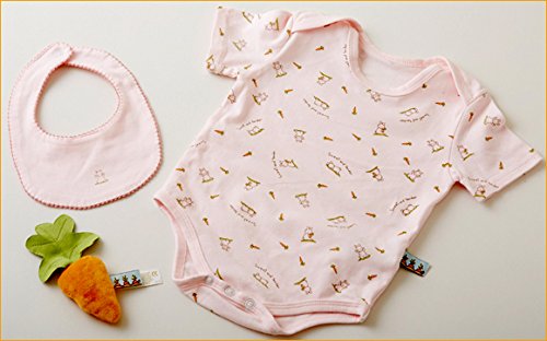 シアトル生まれの高級ベビー服。それがバニーズ バイ ザ ベイです。 ニューヨーク5番街に本店を構え、セレブや有名人達にいま大人気のブランドです。 このバンーズが日本にいながらにして、入手出来るようになりました。まだまだ日本では流通していませんので お早めにゲットして、楽しんでください。 あの女優のアンジェリーナ ジョリーもフアンとの事です。 商品は素材や縫製に細心の注意と気配りをして仕上げていますので、安心してご利用出来ますよ。 赤ちゃんの必需品の半袖ロンパスとスタイと握りおもちゃのセットです。 半袖ロンパスは柔らかな綿ニット製ですので、アウターやインナーとしてまた肌着としても使えます 仕上げも赤ちゃんのことを考えて安全に仕上げています。 首周りの肩のところは2重に重ねていますので頭もスムーズに通せます。スナップ等を使っていませんので安全です 何枚あっても重宝し、毎日使う商品ですがこんな素敵で可愛い高級品をお召しになれば 気分も爽快でたのしくなっちゃいますね。 可愛いいお箱には夢と気持ちがいっぱい詰まっています。 贈る方のセンスがしのばれる逸品です サイズ=新生児より 50cm-60cm