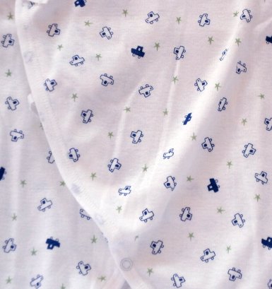 - 特殊なミシンを使い、縫い目は外側に来るように縫い上げています。 内側は袋状になり、ごわごわと縫い目が赤ちゃんの肌にあたることはありません