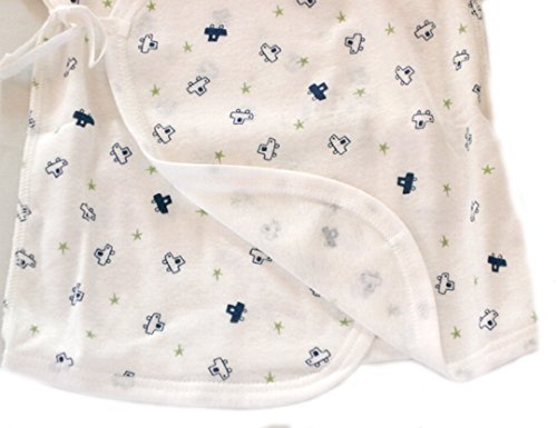 生まれて初めてお肌に触れる肌着は、何よりも優しくて良質な製品が良いですね 日本製のニット仕上げですので、赤ちゃんのお肌にはとっても優しいです。 何枚有っても重宝するのが新生児の定番肌着。出産お祝いやギフトにも好評です。 脇紐の位置は赤ちゃんの腕の上下に負担の掛からないような位置に取り付けてあります。 また、フラットシ-マミシンという特殊ミシンで、縫い目が外側に出てくるように縫い上げています。 ですので、内側には縫い目が無く、袋状に仕上がっていますのでゴワゴワしないでお召しになれます。 肌着の定番アイテム短肌着とコンビ肌着がこのセットで揃うので、とっても重宝で便利です。 サイズ50cm 高級長綿使用の日本製 お箱詰め商品 出産祝いやギフトにもどうぞ