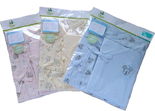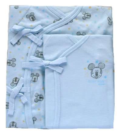 生まれて初めてお肌に触れる肌着は、何よりも優しくて良質な製品が良いですね おなじみのディズニーキャラ柄の肌着ゼットです。 何枚有っても重宝する新生児の定番肌着に是非ミッキー柄も1枚加えておて下さい。 素材はしっかりとした綿ニットを使用しています。毎日お洗濯をする肌着には、洗濯に強いしっかりとした生地がいいですね 脇紐の位置は赤ちゃんの腕の上下に負担の掛からないような位置に取り付けてあります。 また、フラットシ-マミシンという特殊ミシンで、縫い目が外側に出てくるように縫い上げています。 ですので、内側には縫い目が無く、袋状に仕上がっていますのでゴワゴワしないでお召しになれます。 肌着の定番アイテム短肌着とコンビ肌着がこのセットで揃うので、とっても重宝で便利です。 サイズ50cmー60cm 出産祝いやギフトにもどうぞ