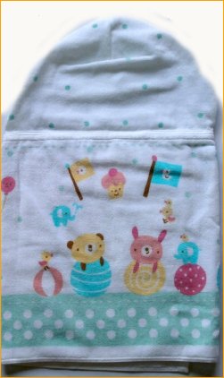 • 当店一押しのフード付きタオル。一つ有ると便利な形のタオルです