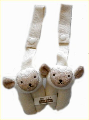 人気のひつじさんシリーズに可愛いベビークリップ 何でもクリップ 便利クリップが出来ました。 赤ちゃんは何かと物を挟む場面が多いいですね。たとえばおくるみの前がはだけないように お昼ねのときのタオルケットを留めたり、ベビーカーの掛け物がずれないように、おしゃぶりが落っこちないようになど、色々とあります そんな時こんな可愛いクリップがあればとっても重宝致します。 マスコットで物を挟んでいるなんて、ママのセンスのよさが、しのばれますね。 素材も柔らかな綿パイルですので、赤ちゃんにぶつかっても痛くなく、安全に使えます。 マスコットサイズ=9cm 日本製が嬉しいベビー用品です。