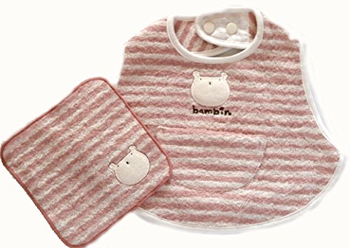 このタオルは普通のタオル用としてではなく、ベビーちゃんが着ることを前提として、オリジナルで柔らかく織り上げられたタオルです。。 今治タオルの商標使用基準をクリアーした、吸湿性に優れ、肌触りがよいタオルとして仕上がています。 ベビーちゃんを抱っこするママも肌触りが良いので大満足。 何枚有っても重宝するにがスタイです。1日に何度も取り替えなくてはならないスタイには吸湿性に優れたタオル際が1番ですね。 横幅を広く取ったデザインですので、脇までしっかりと掛かります。前だけに掛かるスタイとは出来が違います へむの部分は綿テープでパイピングしていますので。お洗濯に強く、型崩れもし難いです。 首の部分のスナップで止めて、背中の紐で結びますので、しっかりと掛かりバタバタとはだけません。 タオル製ですからお肌に優しく吸湿性にもすぐれお洗濯にも強いすぐれ物です。本当の違いはお洗濯の後にわかります。 お揃いの柄のミニタオルとのセットが嬉しい。同じ柄でお口や頭を拭いてあげればとってもおしゃれ!! タオルとミニタイルがセットですので、出産祝いやギフトにも最適です。 無料にてお箱詰め致しますので、ご希望の場合は備考欄にてご指示ください。 サイズ=スタイ 24cmx30cm ミニタオル=16cmx16cm 日本製