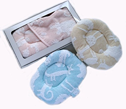 無撚糸を使用し特殊加工をしたとっても柔らかなベビーギフトセットをを作りました。 タオルの優しさが赤ちゃんを包みます。今話題の今治タオル認定商品です 肌触りが優しくて吸湿性にも優れていますので、まだお肌の弱い赤ちゃんにはとっても嬉しい商品です そんなタオルを使用して仕上げた抱っこ枕とスタイのギフトセットが出来ました どちらのアイテムも便利で重宝するアイテムですので、贈り物に大変好評をいただいております。 抱っこ枕は、ママの腕に装着し赤ちゃんを抱っこしてあげれば頭は安定し、心地よく抱っこされます。 また、赤ちゃんは頭にはいっぱい汗をかきますので、おっぱいの時やお出かけの時には重宝いたします。 お布団で使えばドーナツ枕としても使えるし、手洗いもできる優れものです。 スタイは何枚あっても重宝いたします。1日に何度も替えないとなりませんね。 お肌にやさしく吸湿性にも優れお洗濯にも強いタオル製スタイをぜひお試しください。 出産祝いやギフトにもどうぞ。今治タオル 日本製 枕サイズ=13cmx21cmx4cm スタイサイズ=22cmx22cm