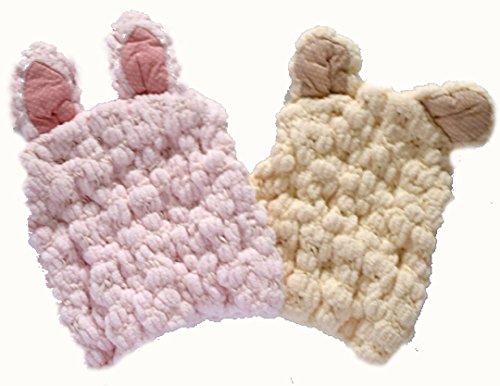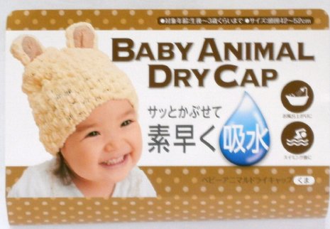 濡れた髪の毛の水分を被せるだけで吸水する、ドライキャップが出来ました。 お風呂上りや水遊びで濡れた髪の毛を、タオルでごしごし拭くのを嫌がるお子様って多いいですよね。 そんな時、このドライキャップを頭に被せてあげればどんどん水分を吸水していきます。 被っているだけで、知らず知らずのうちに髪の毛が乾いていく優れもの商品の登場です。 こんな可愛い動物さんのキャップなら、お子様も喜んで被ってくれるでしょう。 そして髪の毛が自然に乾いていく楽しい商品です 柔らかな細い繊維をデコボコに編み上げています。ですので表面積の多いいキャップということになり、 それだけ級水面も多くなるということです。 だから吸水性は驚くほど高いですよ。 うさぎさん柄とくまさん柄の2型をご用意致しました。 サイズ=42cm-52cm 1歳から3歳くらい 手洗い可