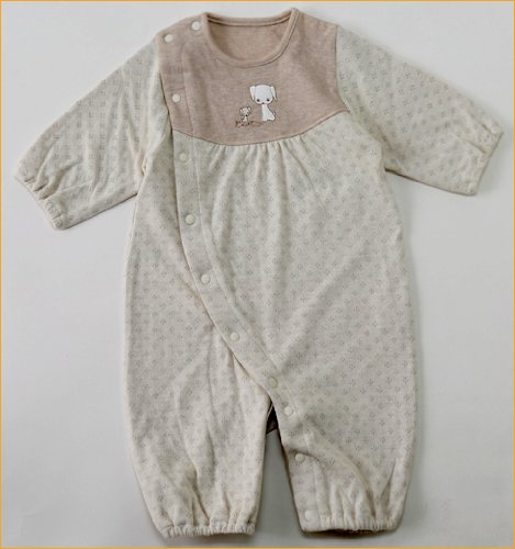【オーガニックコットン】のベビー服=綿ニット製ベビードレス 2WAYベビードレス ツーウエー*カバーオール =2WAYベビー服*出産祝いやギフトにもどうぞ (ベージュ)