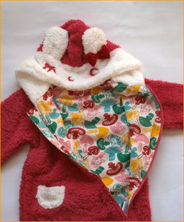 - フード付きだから外気を遮断して更に暖か お耳がついているので、動物さんの着ぐるみみたいですね