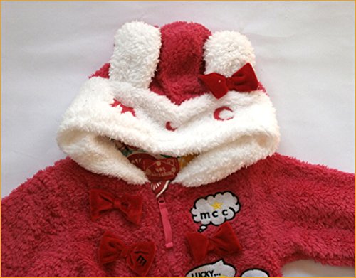 暖かボアのベビー服 オーバーオール カバーオール 暖か つなぎ 着ぐるみ 防寒着 おくるみ 出産祝いやギフトにもどうぞ (ローズ)