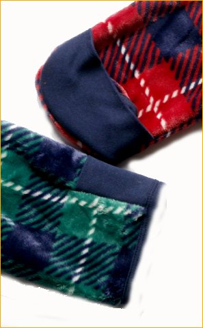 - 袖の先は袋状になっていますので、布を折り返せばすっぽり赤ちゃんの手を包みます 、同じように裾の布をひっくり返せば足先もすっぽりくるめます