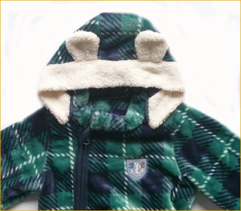 これからの季節に1枚あると便利なお召しものがカバーオールです。ベロア加工した素材ですので肌触りはとっても滑らか 軽くて暖かなボア製ベビー服はぜひとも揃えておきたいアイテムです。 赤ちゃんをスッポリ包んであげるので、とっても暖かです。 フード付きですので気温にあわせて着こなせます。 ファスナーで足首まで全開しますので、脱ぎ着は簡単です。2WAYタイプのベビー服ではありません。 ベビー服としてだけでなく着ぐるみとして、またおくるみとしてもご利用になれます。 フードはスナップで取り外しできる方式です。 袖先と足先には袋状のポケットが付いていますので、 ひっくり返せばすっぽり手先足先を包むことができます。 脱ぎ着も簡単ですので、これからの寒い季節のい味方です。是非1枚揃えておきたいですね。 軽くて暖かで上品な仕上がりは、センスのいいママのグッドチョイスです 出産お祝いやギフトにもどうぞ サイズ=80cm