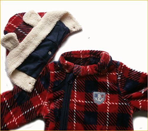ボア製ベビー服 カバーオール オーバーオール ベビー服 暖か つなぎ 着ぐるみ 防寒着 おくるみ 出産祝いやギフトにもどうぞ (赤)