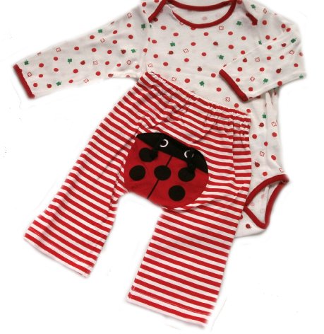 ベビーギフトセット ベビー服セット なりきりベビーウェアー 上下セット Tオール 出産祝い 肌着 ベビー肌着 ロンパス肌着 モンキーパンツ キャップ 帽子 新生児 ベビーウェアー 綿ニット製 (テントウムシさん柄)