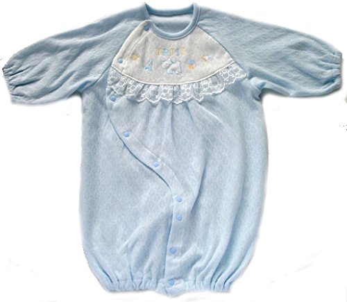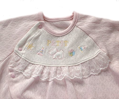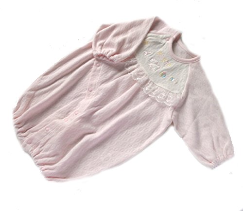 柔らかな綿ニット製のベビー服です。薄手生地を使用していますので、暑い季節にはうれしいですね。 お肌にやさしく着心地も快適な高級ベビー服が出来ました 大切な赤ちゃんには上質の衣料環境を与えてあげたいですね。 このタイプのベビー服は新生児からすぐに使う、赤ちゃんの必需品です。何枚あっても重宝するし、洗い替えにも何枚も必要です。 ぜひこんな淡い色目で上品なベビードレスをお揃えください。 2WAYドレスオールは、裾のスナップを留めかえるだけで、ベビードレスとしても カバーオールとしても使用できます。 また、前部のスナップはななめに取り付けていますので、うつ伏せ寝しても痛くないような仕上げをしています。 素材も細番手の糸を使用していますので、薄手でとっても柔らかで肌触りが良い綿ニット製です。 更にはり抜きの綿ニットですので通気性があって」、涼しくお召しになれます。 アップリケも可愛く細部にまで気配りをしたベビー服をぜひお試しください。 しかも、アップリケと同柄のレースを使用している手の込んだ仕上げをしています。 出産祝いやギフトにも最適です。送って安心、もらって嬉しいベビー服です。 赤ちゃんの事をしっかり考えて仕上げています。 ベビードレスは何枚有っても重宝いたしますので貰って嬉しい逸品です サイズ=50cm-70cm 日本製です。