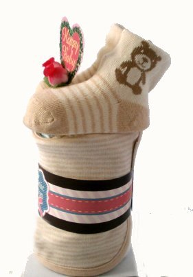 - 上にソックスをデコレートして、下部にスタイで紙おむつを巻いて仕上げています