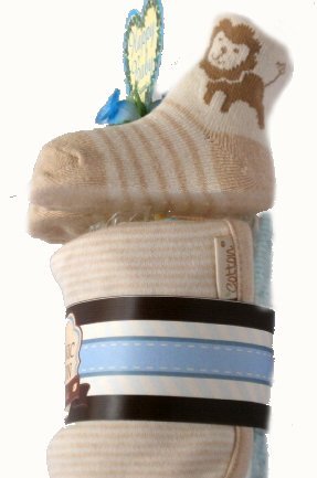 おむつケーキ オーガニックコットン スタイ ビブ 靴下 ソックス ギフトセット おむつ 紙おむつ オムツケーキ 出産祝い 贈り物 ギフト (ブルー)