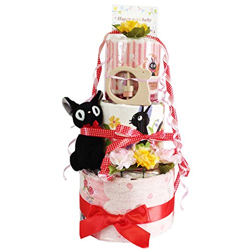 おむつケーキ オムツケーキ トトロ ジジ ジブリ 出産祝い 新生児 ダイバーケーキ おむつ 紙おむつ タオル パンパース ギフト 贈り物 14 (ジジ)