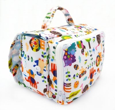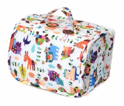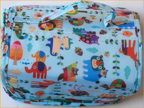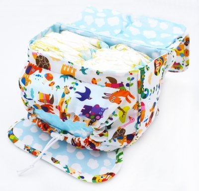 色がやさしくて柄がとっても可愛い、ちょっと見かけない素敵なオムツポーチが出来ました。さすがアメリカデザインですね。 有るようでなかなかお目にかかれないのが、多機能で便利なおむつぽーちです。ポリエステル製ですので、軽くて丈夫で水や汚れにも強い優物です。 もち手が付いていますので、外出時には便利だし、勿論ママバッグにも入ります。 オムツは最大8枚入ります。使って減ってきたらサイドのスナップで厚さ調節をして、コンパクトなサイズに変更できます 汚れたオムツを仕舞っておくポケットがついていたり、お尻拭きがピッタリ入るポケットも付いています。 内側にもポケットやフックつきの紐も付いていますので、ベッドサイドに吊るして使うことも出来ます。 ポリエステル製ですので水や汚れに強く軽くて取り扱いも簡単な優れものです。 出産祝いやギフトにもどうぞ サイズ=20cmx13cmx14cm