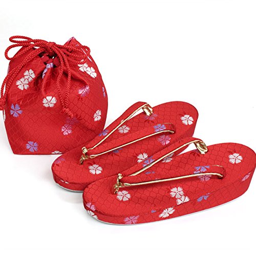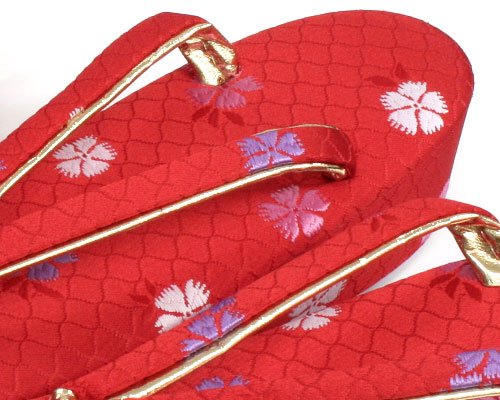 七五三 草履&巾着セット 7歳用 赤地に金網格子 プチ撫子