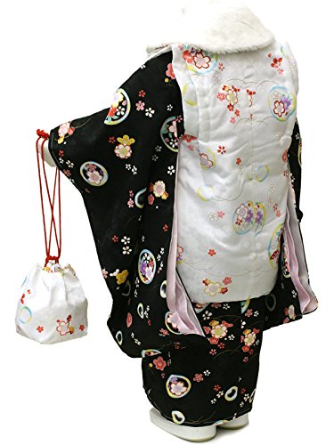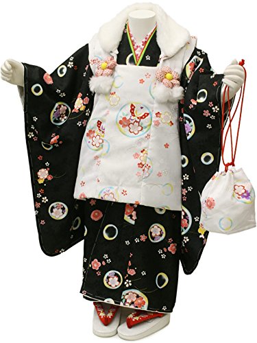 七五三 着物セット 黒地に蝶桜梅のシャボン玉ちらし -礼370-