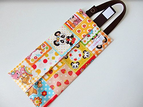 - スナップつきのテープがついているのでバッグやベビーカーに取り付けていただけます。使いたい時にすぐ見つけられて便利です。