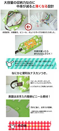現役ママが考案したオリジナル取り出し口を搭載したオムツポーチです。 国内で考案者自らが生産をしております。 おしりふき本体の蓋を取ってしまっても乾燥しないので、既製品のウェットティッシュのように片手で扱えますよ。 持ち手にナスカンをつけているので、荷物が増えた時など、ベビーカーのカゴを独占せず、いろいろな場所にぶら下げられるのが嬉しいですね♪ 中身が減ると本体も薄くなっていく、かさばらない優れもの。 重さはなんと100g前後。本体地は軽くて丈夫&汚れたらサッとひと拭きできるラミネート生地になっています。 荷物の多いママに最適なポーチです。 POPでカラフル!バリエーションが豊富なのでママ友とかぶる心配なしです!みんなに自慢しちゃえるポーチです! 尚、ラミネート+撥水糸で外からの水には強くしてありますが、生地の性質上縫い目や内側からの浸水に対しては強くありません。 蓋を下にした状態で過度な力は加えないでください。 又、長期でおしりふきをご利用になられない場合はおしりふきの内蓋をしめておいてください。 発送は保障なし/ポスト投函になります。 *商品によって柄の出方が違います事をご了承下さい。 **送付先に「様方」をご希望のお客様へ** ご実家などに送付先をご希望の場合、過去に郵便局の転送サービスをご利用でなかったか、ご確認下さい。 転送サービス期間終了語は、たとえ「様方」の表示をしていても、差出人に荷物が返却されてしまいます。 その場合、送付先を現在その場所に住んでいらっしゃる方にご指定いただけますよう、お願いいたします。