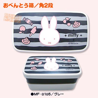 ハシートップイン miffy おべんとう箱角2段 (グレー) MF-8185