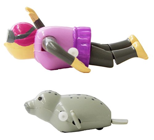 ゼンマイ巻いてスイスイ泳ぐ!【特長】・ゼンマイを巻いてお風呂に浮かべるとスイスイ泳ぎ出します。・水族館がテーマになっていて、ダイバーと水族館にいる動物のセットになっています。・アザラシとイルカは尾ひれをすいすい、ダイバーはクロールをして動きます。・子供にも扱いやすい手のひらに収まるサイズです。