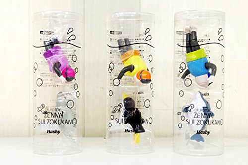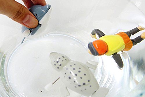 ゼンマイ巻いてスイスイ泳ぐ!【特長】・ゼンマイを巻いてお風呂に浮かべるとスイスイ泳ぎ出します。・水族館がテーマになっていて、ダイバーと水族館にいる動物のセットになっています。・ペンギンは足をばたばたと、ダイバーはクロールをして動きます。・子供にも扱いやすい手のひらに収まるサイズです。
