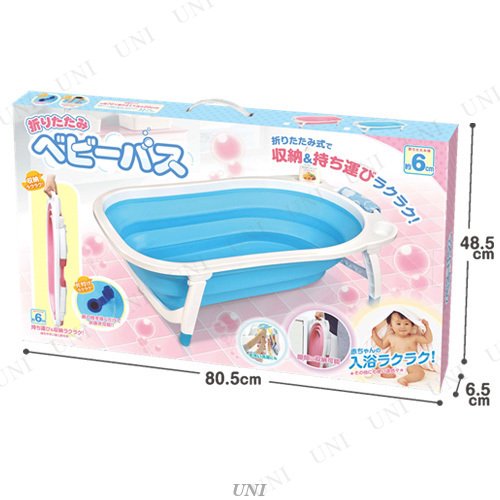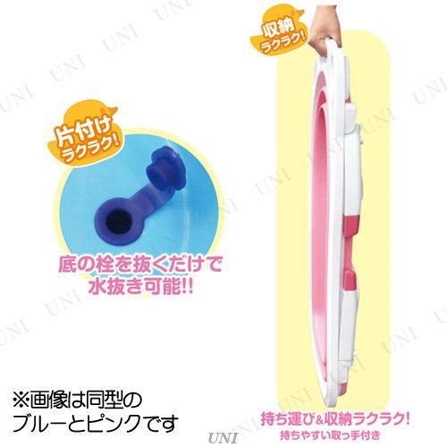 赤ちゃんの入浴ラクラク!収納に便利な折りたたみ式のベビーバスです。使わない時は約6cmにたためて隙間などに収納可能。持ち運びしやすい取っ手付きです。底の栓を抜くだけで水抜きできるので片づけもらくちん。お子様の水遊びや手洗い洗濯用桶など、様々な用途にもご使用いただけます