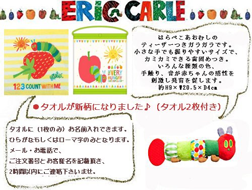 はらぺこあおむしタオルに名入れ刺繍ができます。(無料)