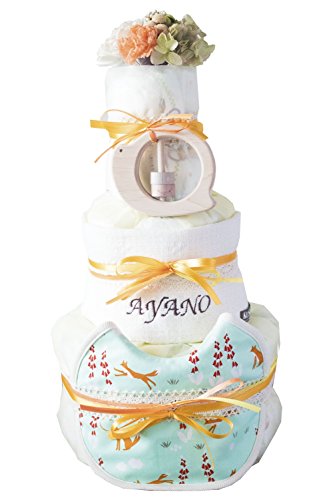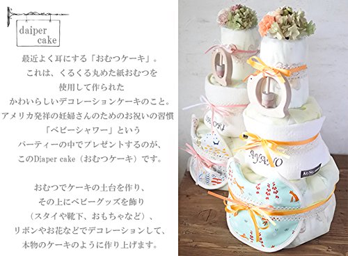 GOTS認証 出産祝い おむつケーキ 北欧 オーガニック スタイ 日本製木のおもちゃ 3段 (フォックスグローブ スタイルアップスタイ,S パンパース)