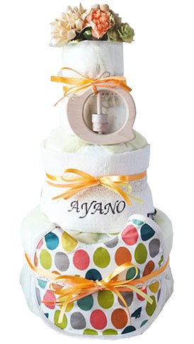 GOTS認証 北欧 オーガニック スタイ 日本製木のおもちゃ 今治 タオル 名入れ無料 3段 おむつケーキ (オーバル スタイルアップスタイ,M パンパーステープ)