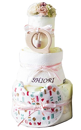 GOTS認証 北欧 オーガニック スタイ 日本製木のおもちゃ 今治 タオル 名入れ無料 3段 おむつケーキ (宝石 スタイルアップスタイ,M パンパーステープ)