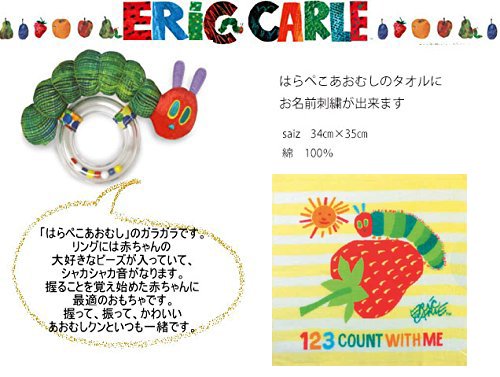 はらぺこあおむしタオルに名入れ刺繍ができます。(無料)