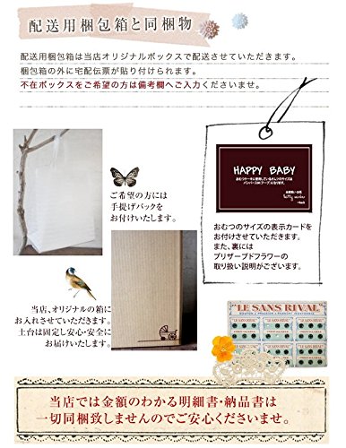 ※受け取った方が分かりやすいよう、オムツのサイズ。プリザーブドフラワー取扱説明書を表示したカードが付きます。
