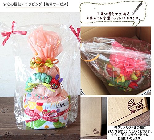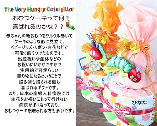 はらぺこあおむし 2段 おむつケーキ タオルネーム 名入れ おもちゃ ギフト セット (S, ピンク×リングラトル)