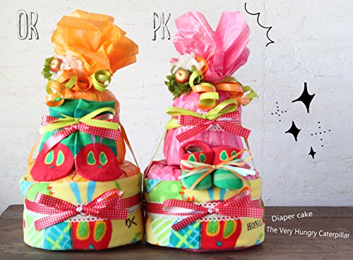 おむつケーキ はらぺこあおむし 名入れタオル ソックス(1歳用) セット オレンジ (Sオムツ, OR1) 出産祝い